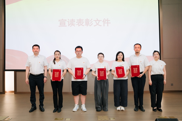 The conference kicked off with the solemn national anthem. First, a probationary party member oath ceremony was held. Then, the conference announced the list of outstanding Communist Party members, outstanding party workers, and advanced party branches of the group for 2024-2025, and commended them.The Party branch of the Capital Operation Center was rated as an advanced Party branch, and five comrades including Zhu Yanhua, Jiang Xiaobo, Peng Shuili, Tu Junjie, and Lin Chaofen were awarded the title of excellent Communist Party members. Comrade Chen Ji was awarded the title of excellent Party worker. Three representatives made typical speeches, in which they expressed their commitment to cherishing honor, striving for excellence, and achieving new accomplishments on the new journey.