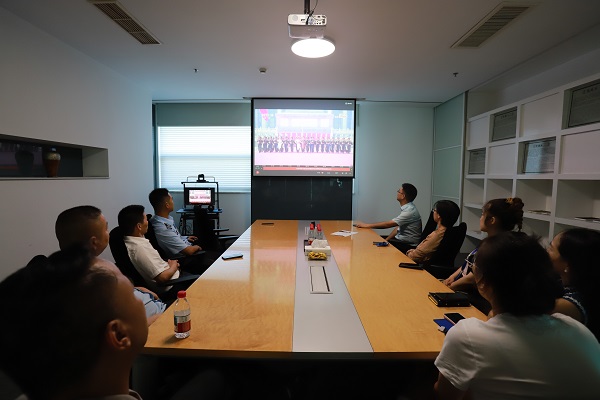 In the morning, Shu Yueping, Deputy Secretary of the Party Committee of the Group Company, and all members of the Party Committee, Discipline Inspection Commission, branch secretaries, branch committee members, and representatives of Party workers attended and watched the venue. Everyone wore the Party emblem and witnessed this historic moment. Each party branch and production base shall organize observation according to the actual work situation.